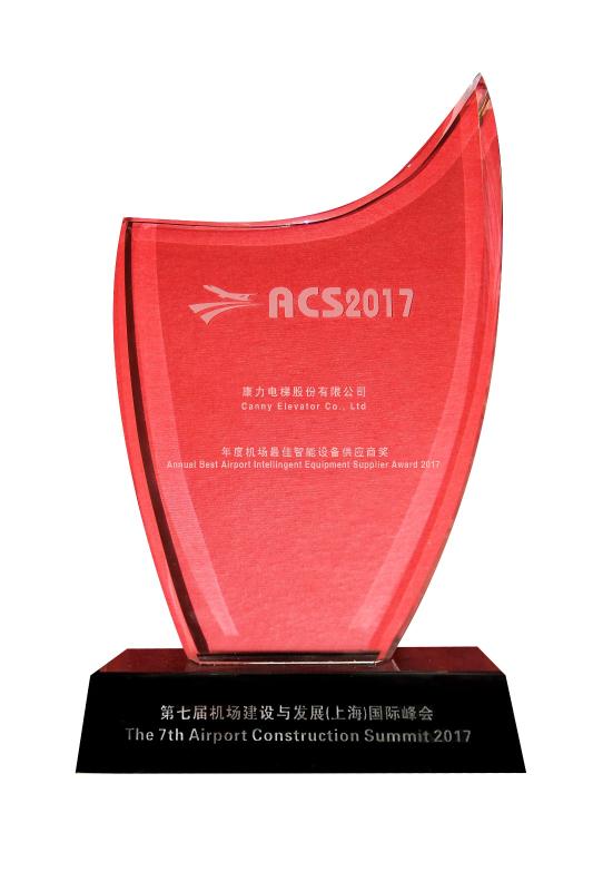 第七届机场建设与发展(上海)国际峰会上,康力电梯荣获2017年度机场最佳智能设备供应商奖,成为唯一获奖的民族电梯品牌。