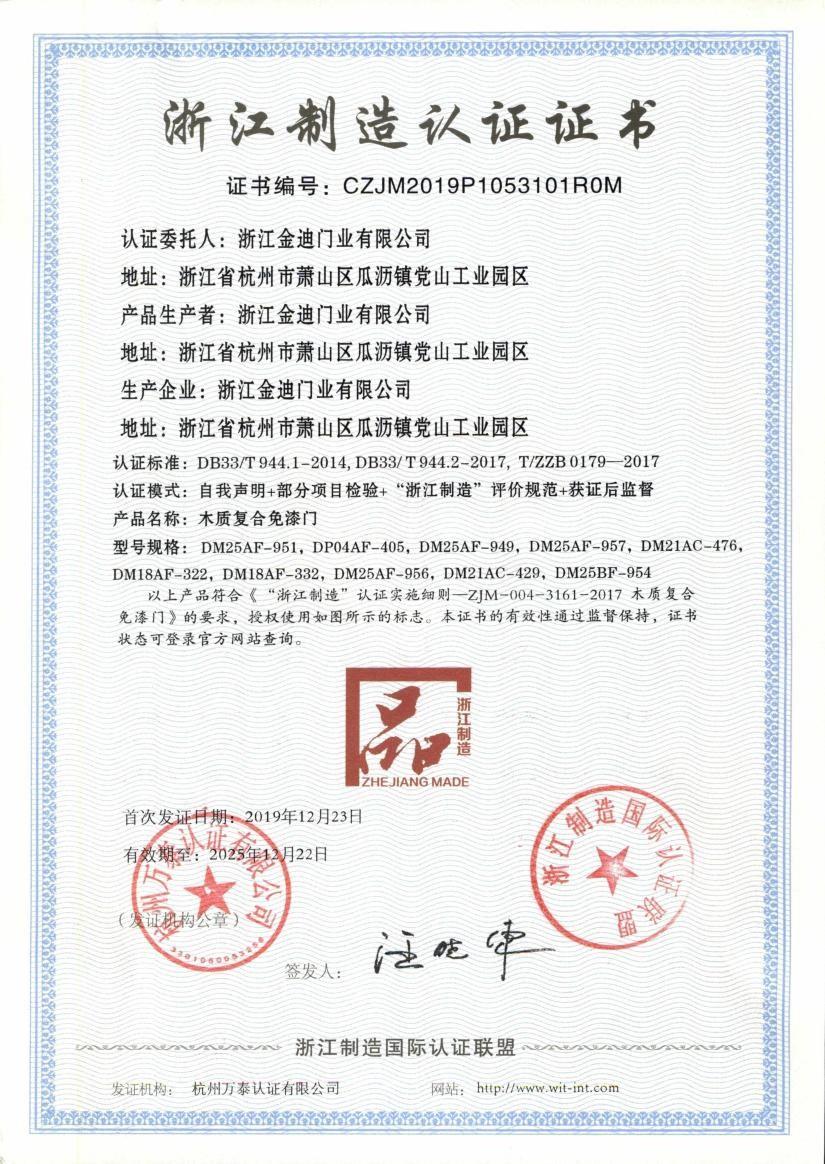 浙江制造认证证书