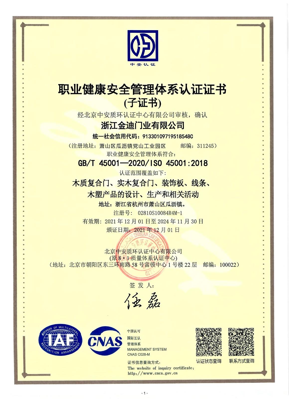 感谢北京中安质环认证中心有限公司对我司的职业健康安全管理的认可。