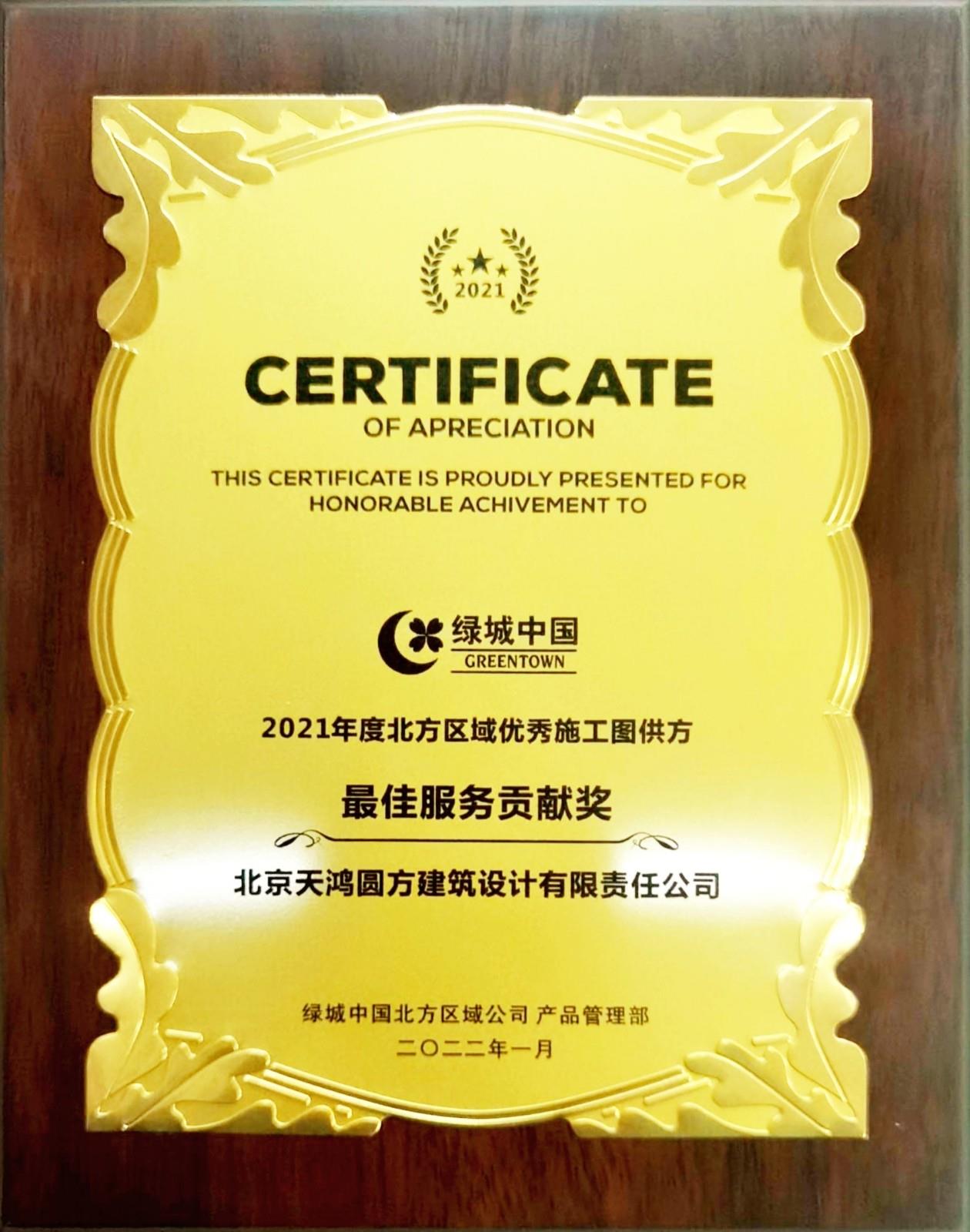 2021年度北方区域优秀施工图供方最佳服务贡献奖