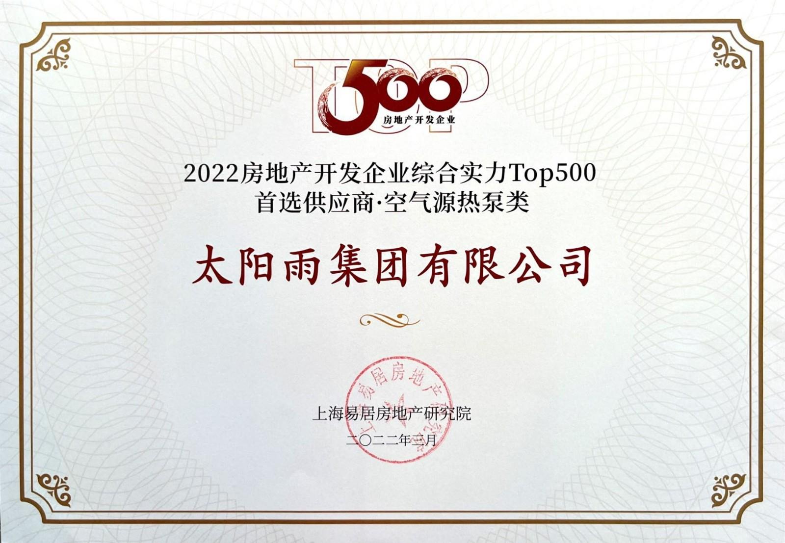| 奖项名称: | 中国房地产开发企业500强首选供应商-空气源热泵类2022 |