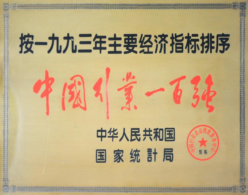 奖项名称: 1993年利税总额荣列中国普通机械制造行业百强企业第21名