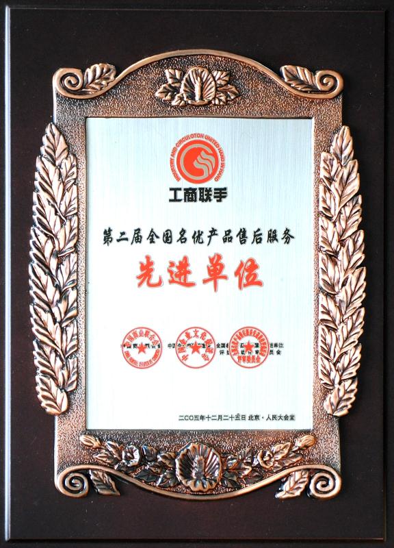 | 奖项名称: | 2005年荣获第二届全国名优产品售后服务先进单位 |