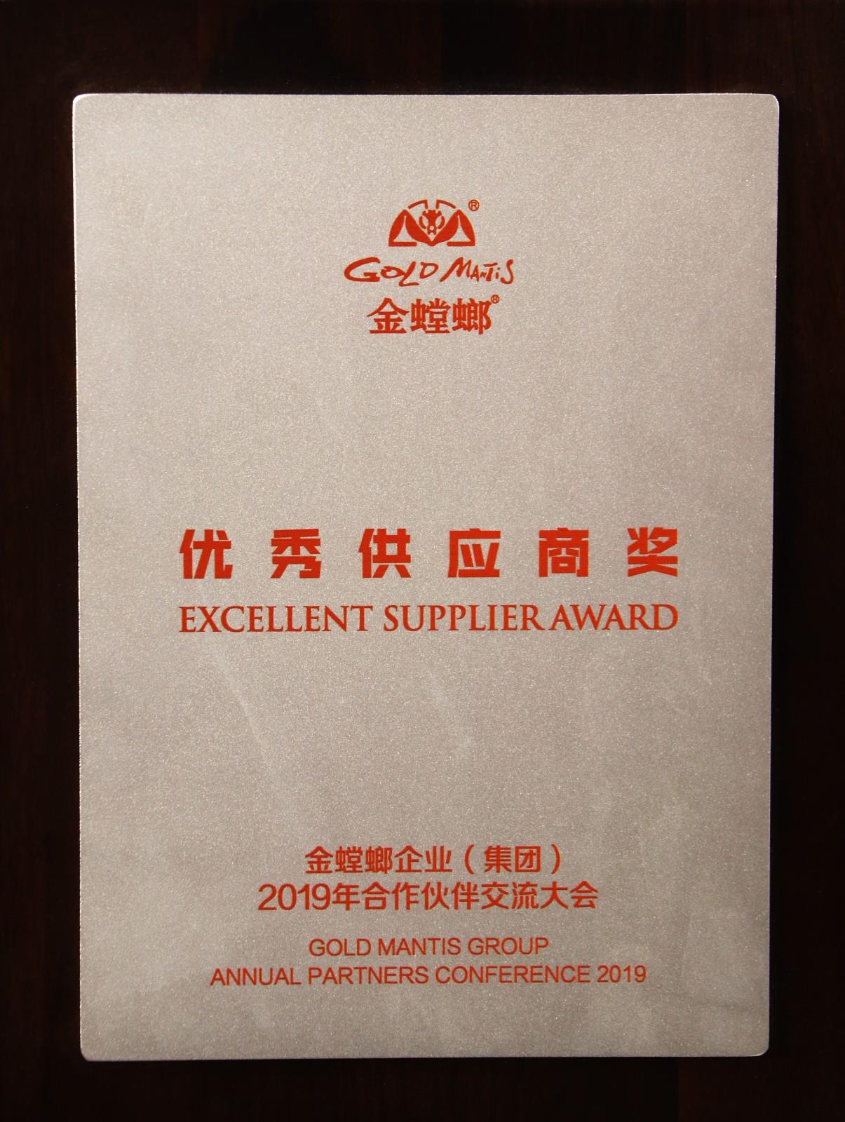 奖项名称: 金螳螂优秀供应商 颁发机构: 苏州金螳螂建筑装饰股份有限公司 2019年12月18日 奖项说明: 苏州金螳螂企业2019年合作伙伴交流大会-优秀供应商