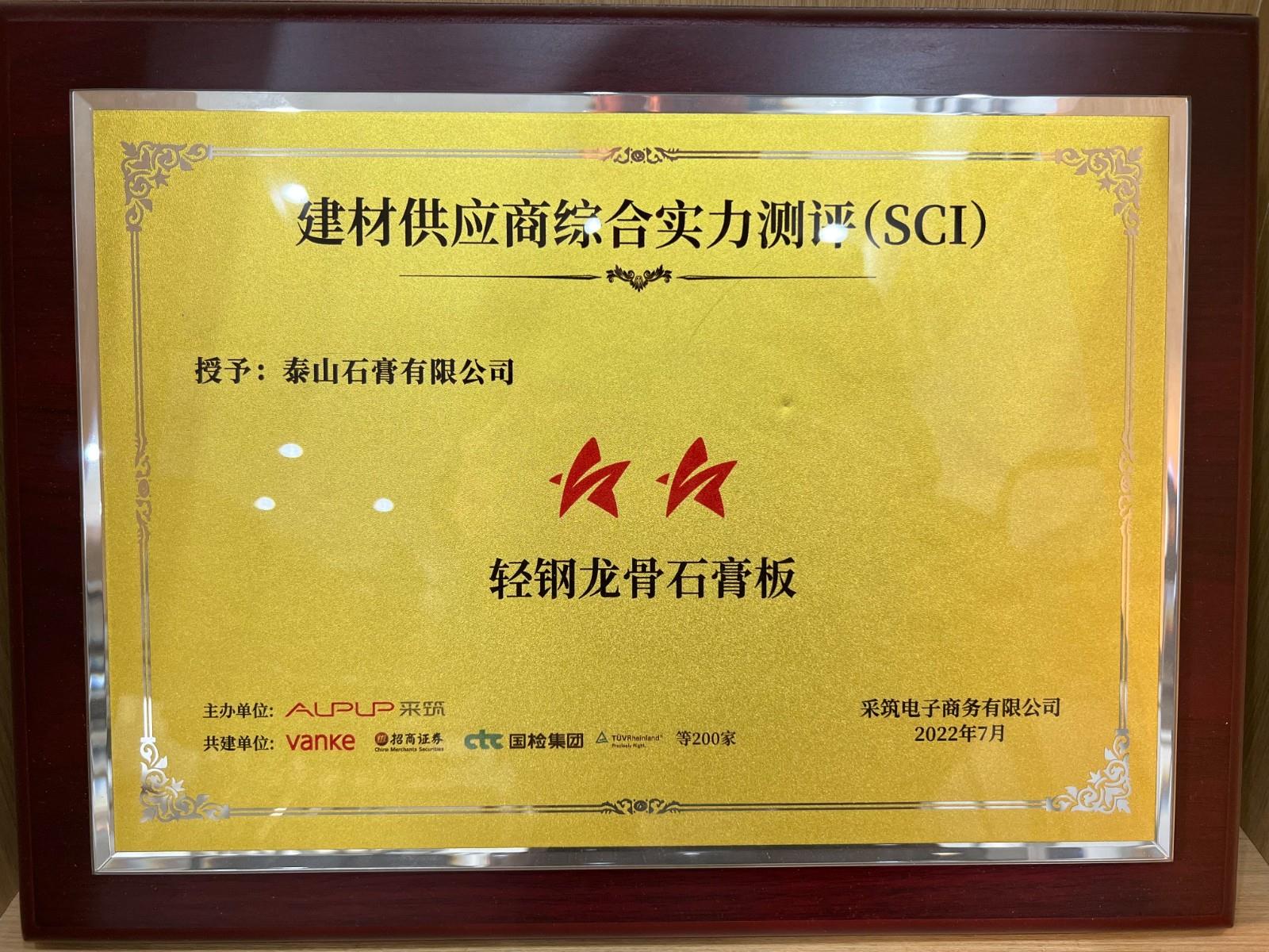 奖项名称: 采筑SCI星级供应商 颁发机构: 采筑电子商务有限公司 2022年07月12日 奖项说明: 采筑电子商务有限公司授予采筑SCI星级供应商