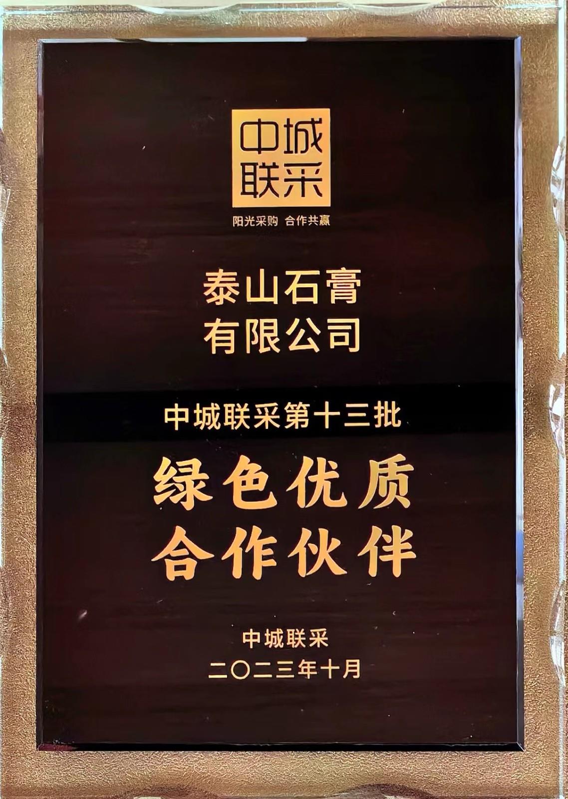 奖项名称: 中城联采第十三批绿色优质合作伙伴 颁发机构: 中城联采 2023年10月23日 奖项说明: 中城联采授予中城联采第十三批绿色优质合作伙伴