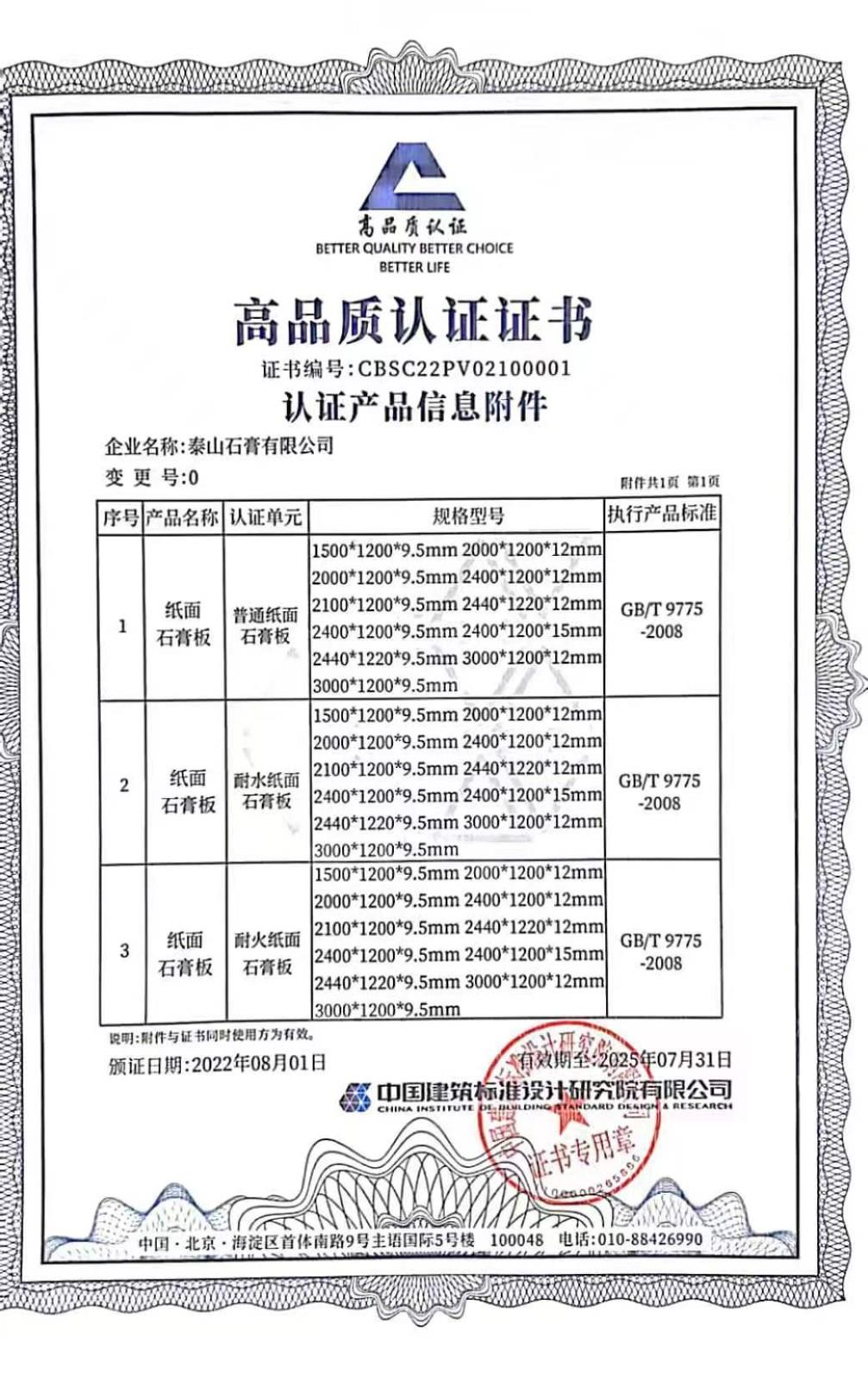 奖项名称: 高品质认证证书 颁发机构: 中国建筑标准设计研究院有限公司 2022年08月01日 奖项说明: 中国建筑标准设计研究院有限公司授予高品质认证证书