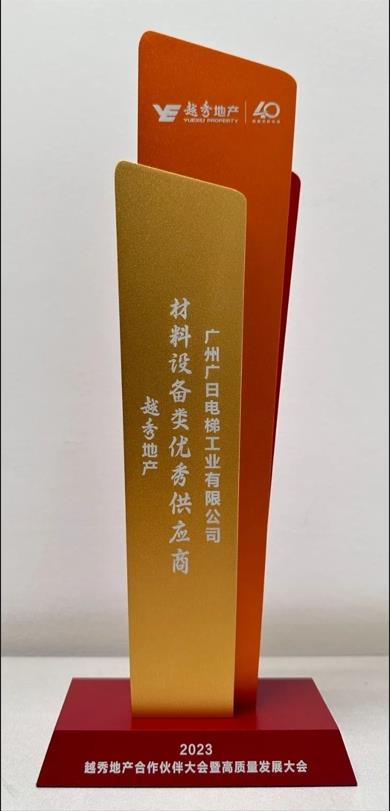 广日电梯凭借优质的产品和专业的服务,在众多企业中脱颖而出,成功蝉联越秀地产“材料设备类优秀供应商”殊荣。