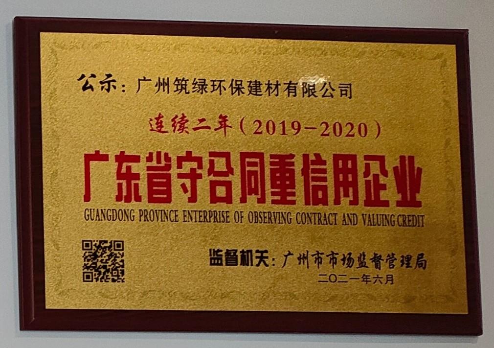 广州筑绿环保建材有限公司连续2年获得广东省守合同重信用企业