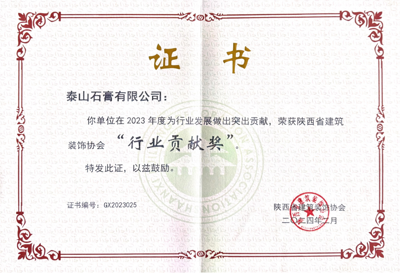 奖项名称: 陕西省建筑装饰协会2024年行业贡献奖 颁发机构: 陕西省建筑装饰协会 2024年02月28日 奖项说明: 陕西省建筑装饰协会2024年行业贡献奖