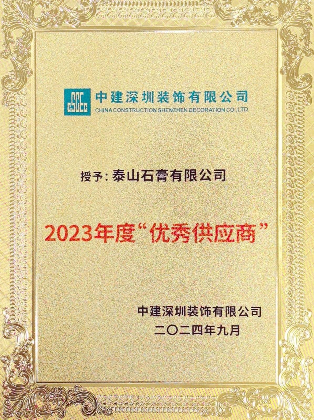 奖项名称: 中建深装2023年度优秀供应商 颁发机构: 中建深圳装饰有限公司 2024年09月03日 奖项说明: 中建深装2023年度优秀供应商
