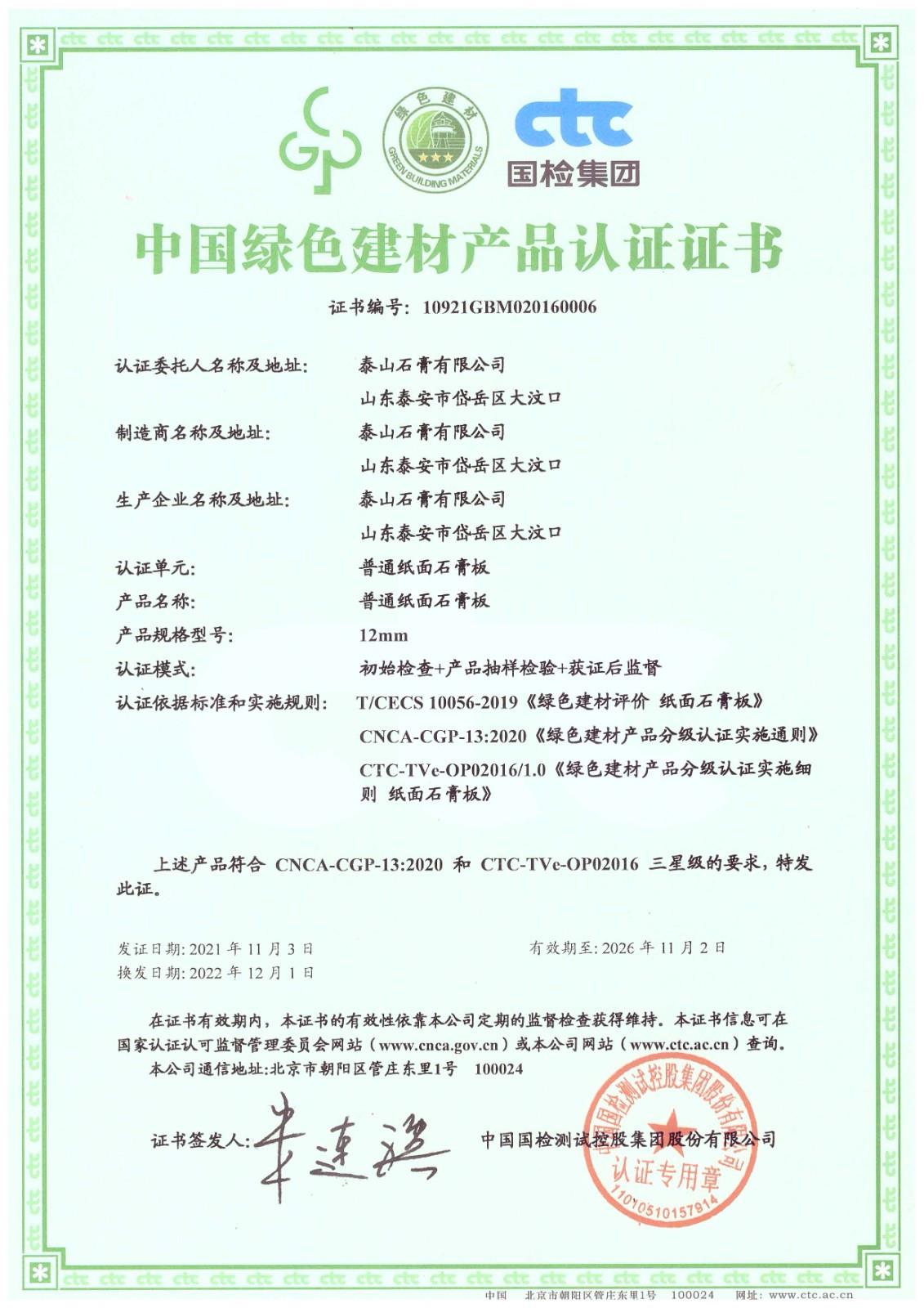 奖项名称: 中国绿色建材产品认证证书