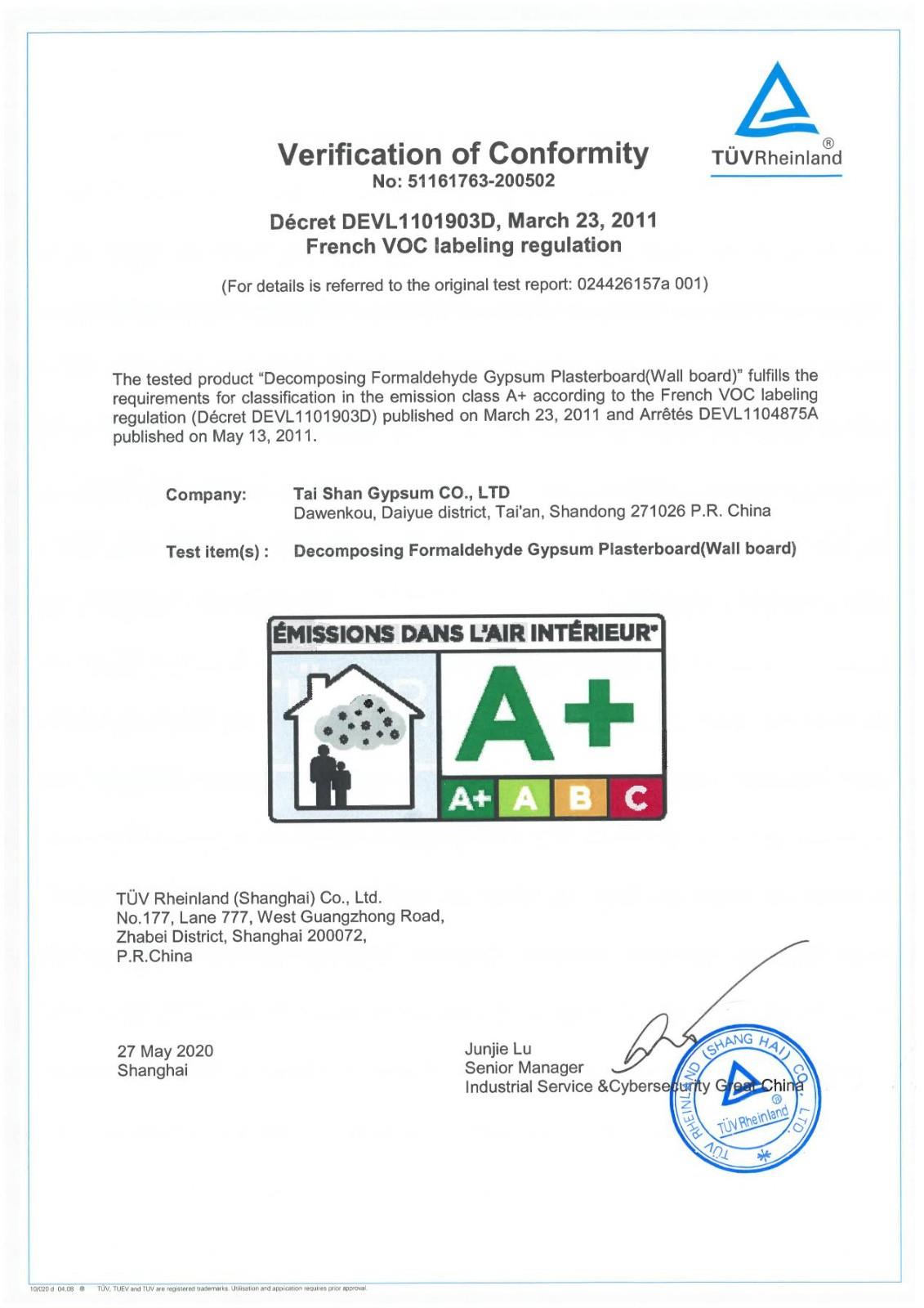 奖项名称: 法国A+认证