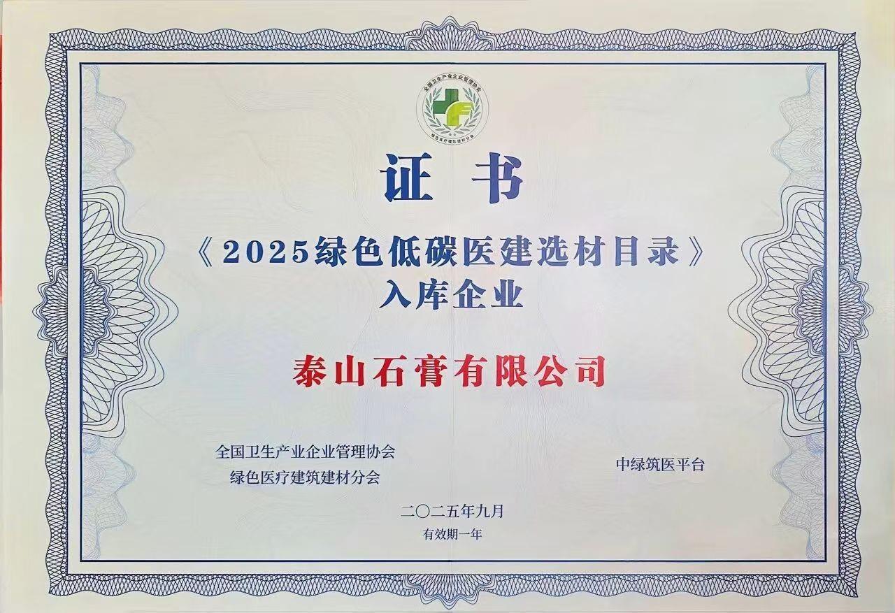 奖项名称: 2025绿色低碳医建选材日录 颁发机构: 全国卫生产业企业管理协会 绿色医疗建筑建材分会 2025年09月11日 奖项说明: 2025绿色低碳医建选材目录入库企业