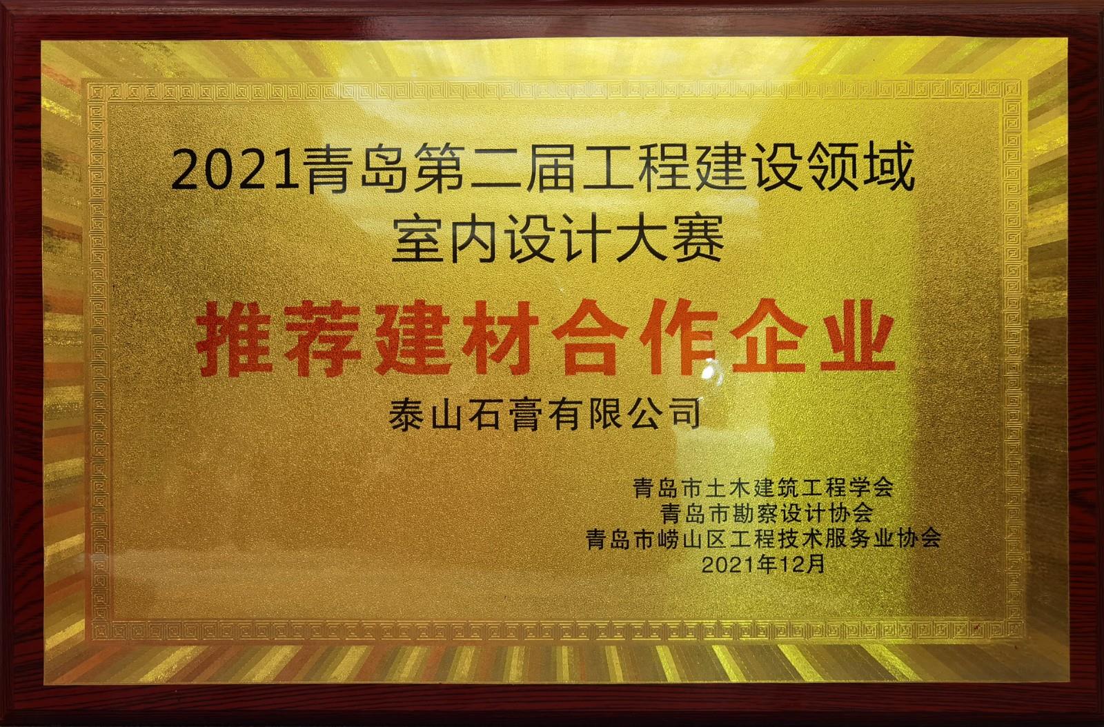 | 奖项名称: | 2021青岛第二届工程建设领域 室内设计大赛推荐建材合作企业 |
