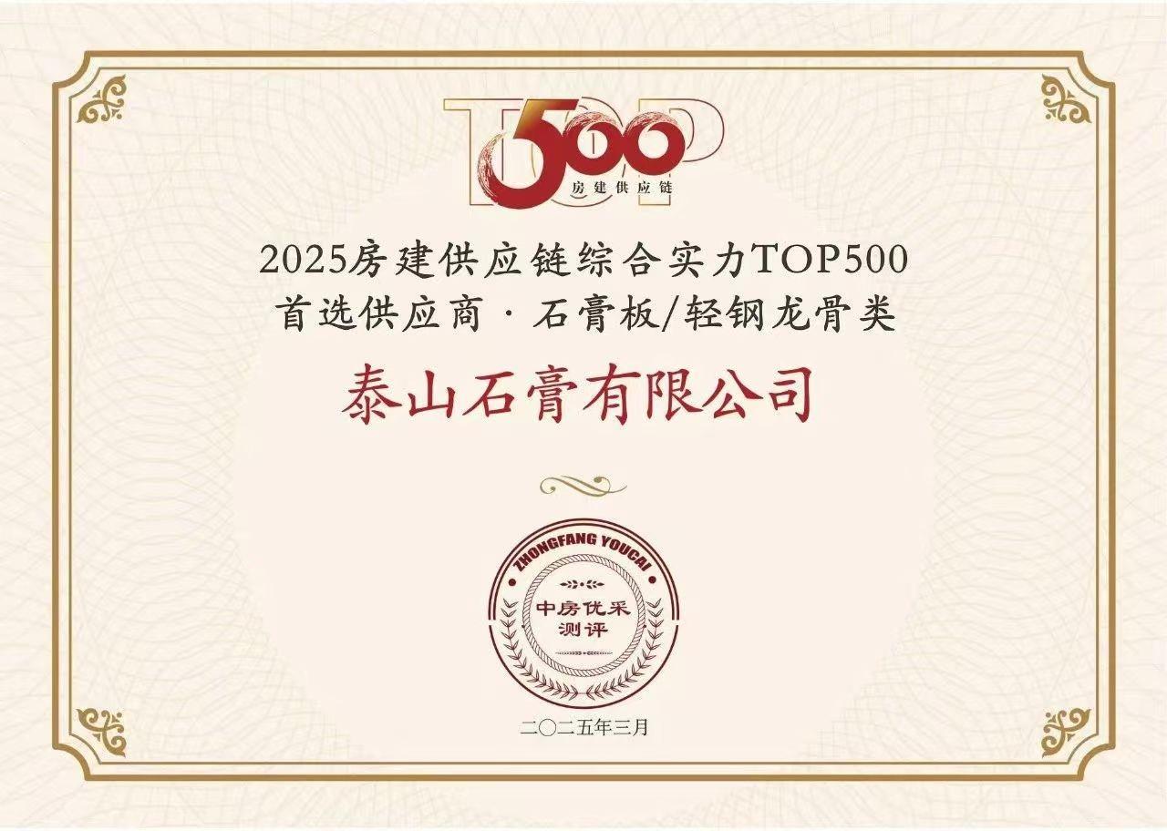 奖项名称: 房地产开发企业500强首选供应商 颁发机构: 中国房地产业协会 2025年03月14日 奖项说明: 房地产开发企业500强首选供应商