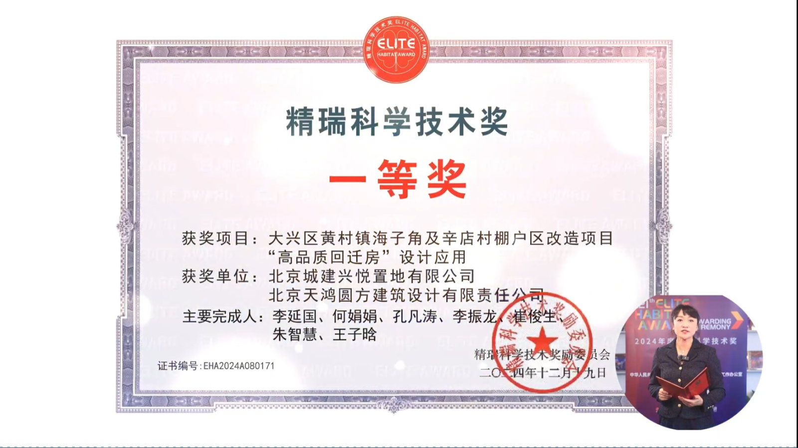 大兴区黄村镇海子角及辛店村棚户区改造项目“高品质回迁房”设计应用获得2024年度精瑞科学技术奖一等奖