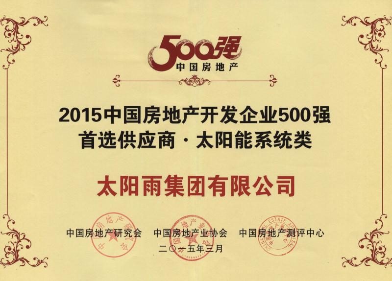 | 奖项名称: | 2015中国房地产开发企业500强首选供应商-太阳能系统类 |