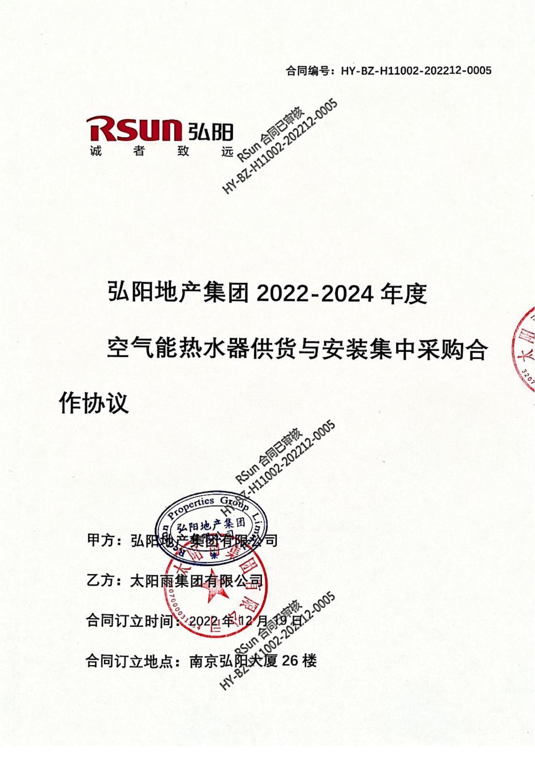 | 战略合作名称: | 弘****团2022-2024年度空气能热水器供货与安装集中采购合作协议 |