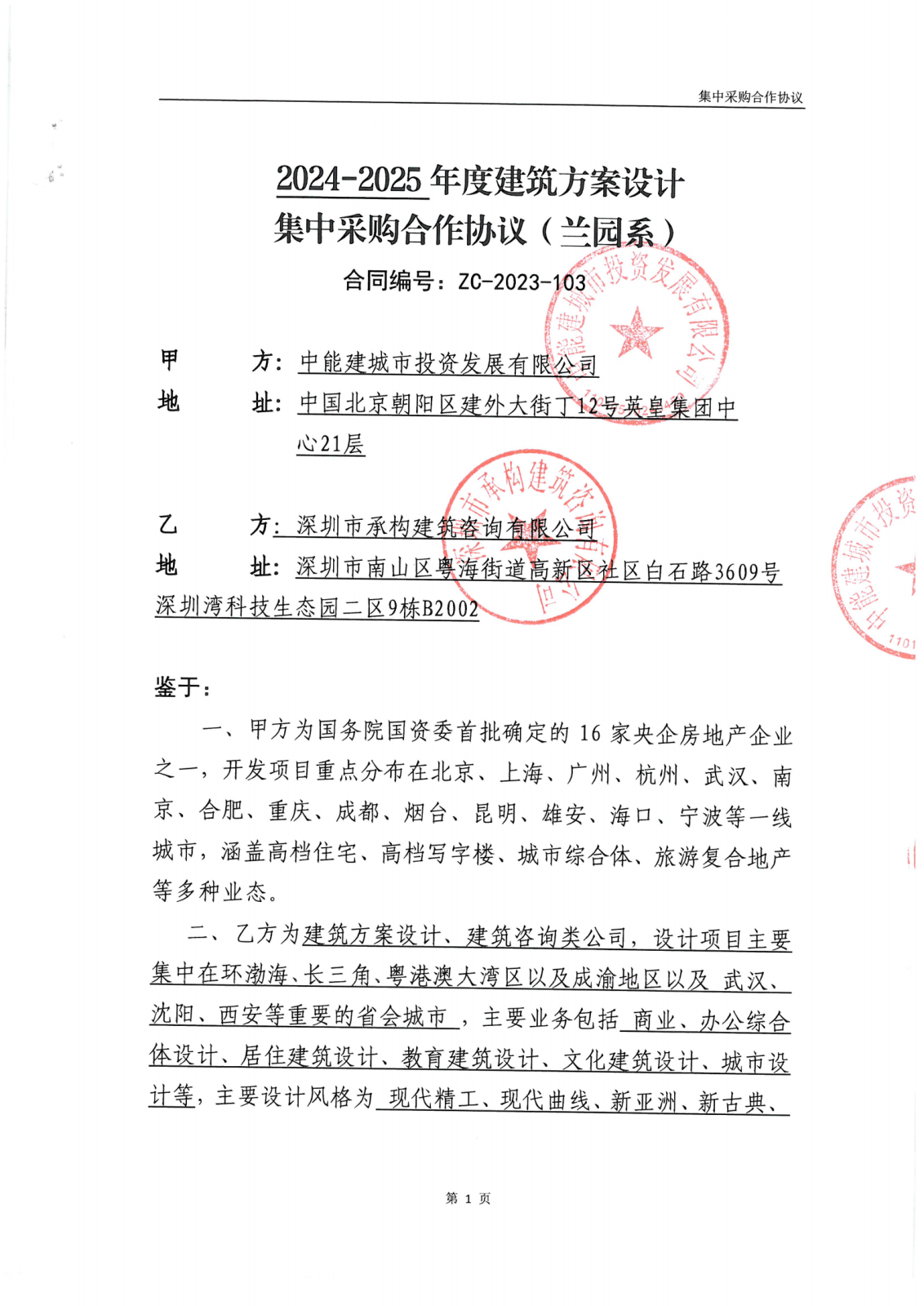开发商名称: 中****集团房地产开发有限公司 战略合作名称: 2****2025年度建筑方案设计集中采购合作协议(兰园系) 战略合作类别: 建筑/规划设计 战略合作期限: 2024年01月01日至2025年12月31日 战略合作范围: 作为战略合作方的建筑方案设计、建筑咨询类公司,设计项目主要集中在环渤海、长三角、粤港澳大湾区以及成渝地区以及武汉、 ...... [登录可见]