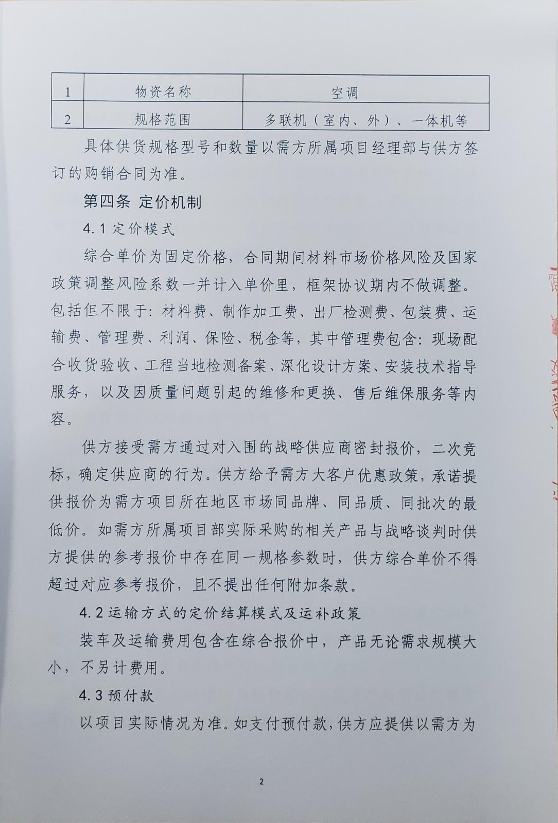 开发商名称: 中****份有限公司 战略合作名称: 中****团有限公司物资集中采购协议 战略合作类别: 家用中央空调 战略合作期限: 2023年12月27日至2024年12月31日 战略合作范围: 多联机(室内、 ...... [登录可见]