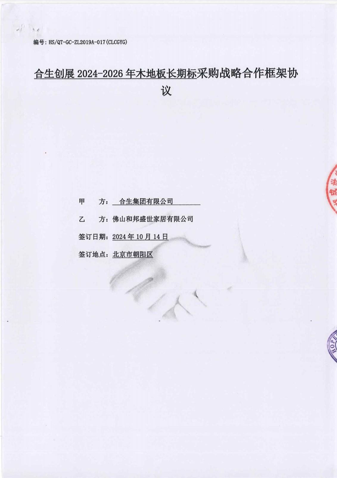 | 战略合作名称: | 合****024-2026年木地板长期标采购战略合同框架协议 |