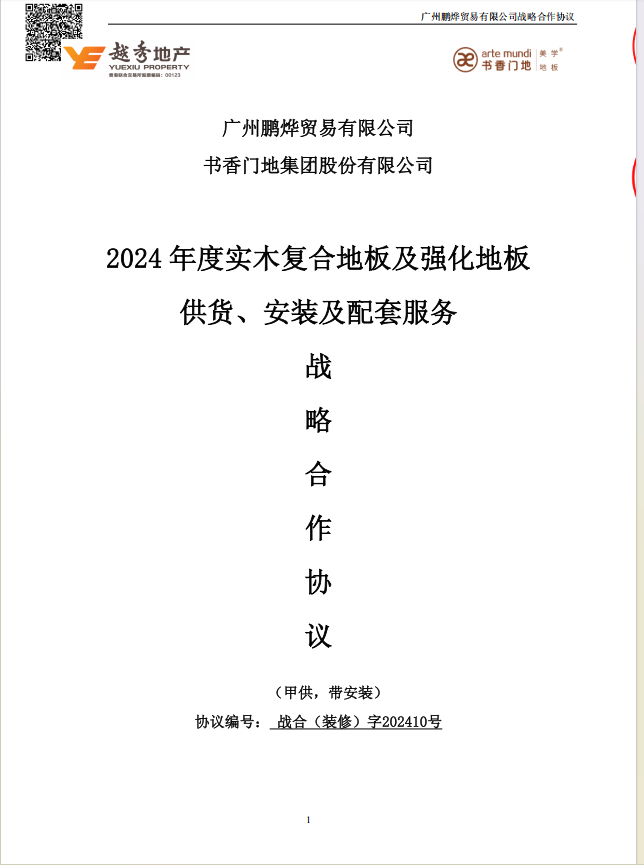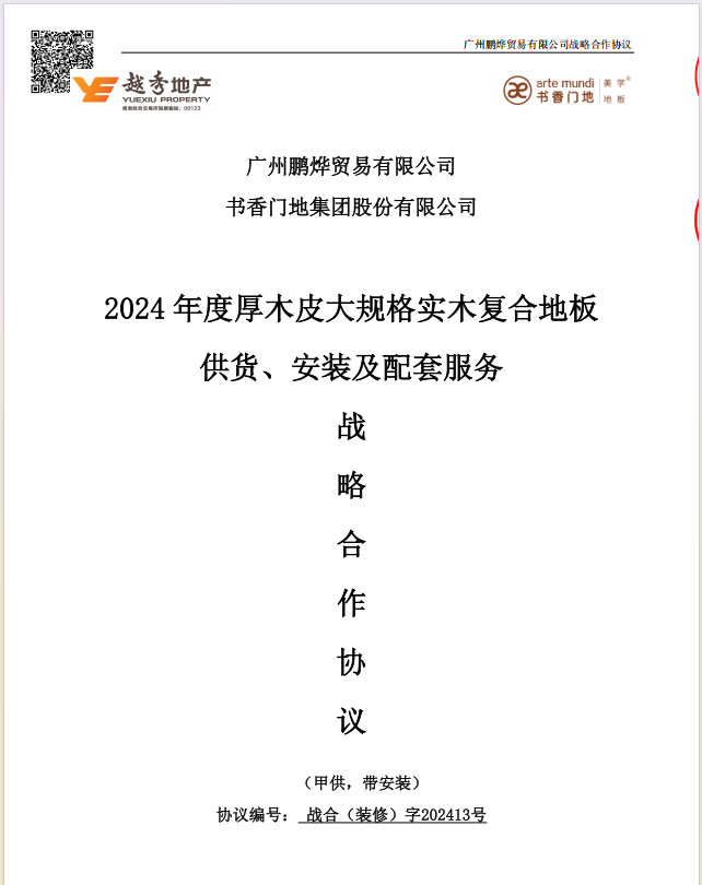 | 战略合作名称: | 0****实木复合地板及强化地板供货、安装及配套服务战略合作协议-书香门地/2024年度厚木皮大规格实木复合地板供货、安装及配套服务战略合作协议-书香门地 |
