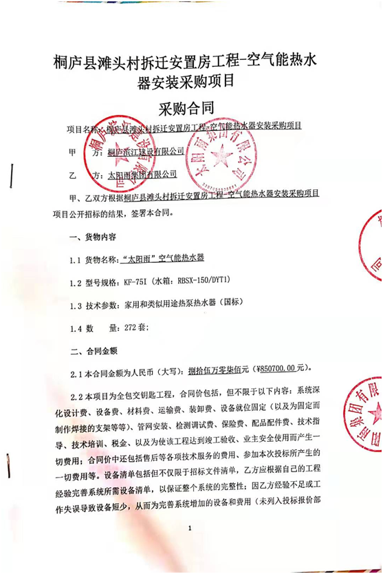 | 招标名称: | 桐***头村拆迁安置房工程-空气能热水器安装采购项目 |