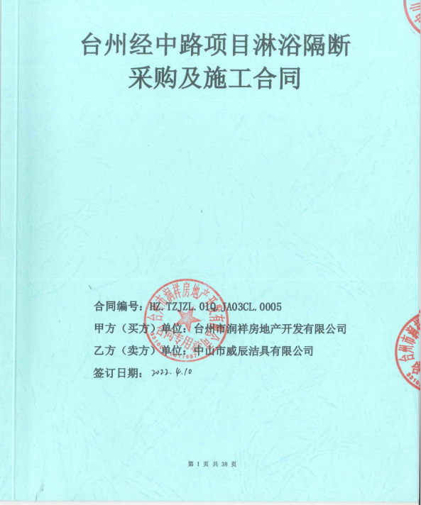 | 项目名称: | 台州经中路项目淋浴隔断采购及施工合同 |