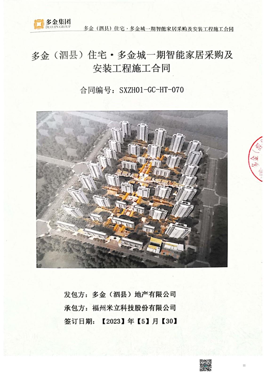 甲方名称: 多***县)地产有限公司 项目名称: 多金(泗县)住宅·多金城一期智能家居采购及安装工程 招标名称: 多***县)住宅·多金城一期智能家居采购及安装工程 项目地点: 宿州 中标时间: 2023年05月30日 中标范围: