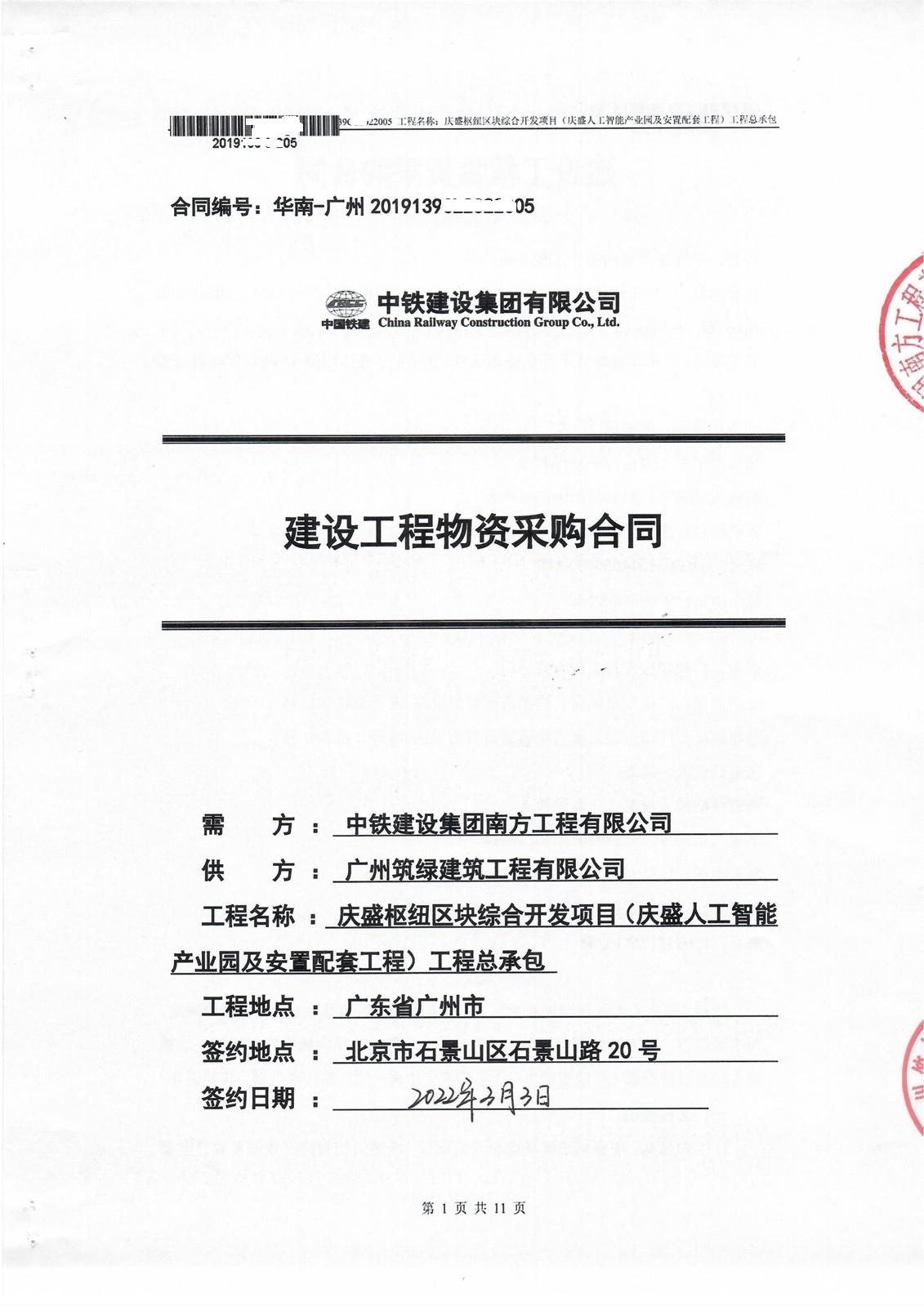 甲方名称: 中***集团南方工程有限公司 项目名称: 庆盛枢纽区块综合开发项目(庆盛人工智能产业园及安置配套工程) 招标名称: 庆***区块综合开发项目建设工程物资采购合同 项目地点: 广州 中标时间: 2022年03月03日 中标范围: 筑绿中标中铁建设集团南方工程有限公司庆盛枢纽区块 ...... [登录可见]