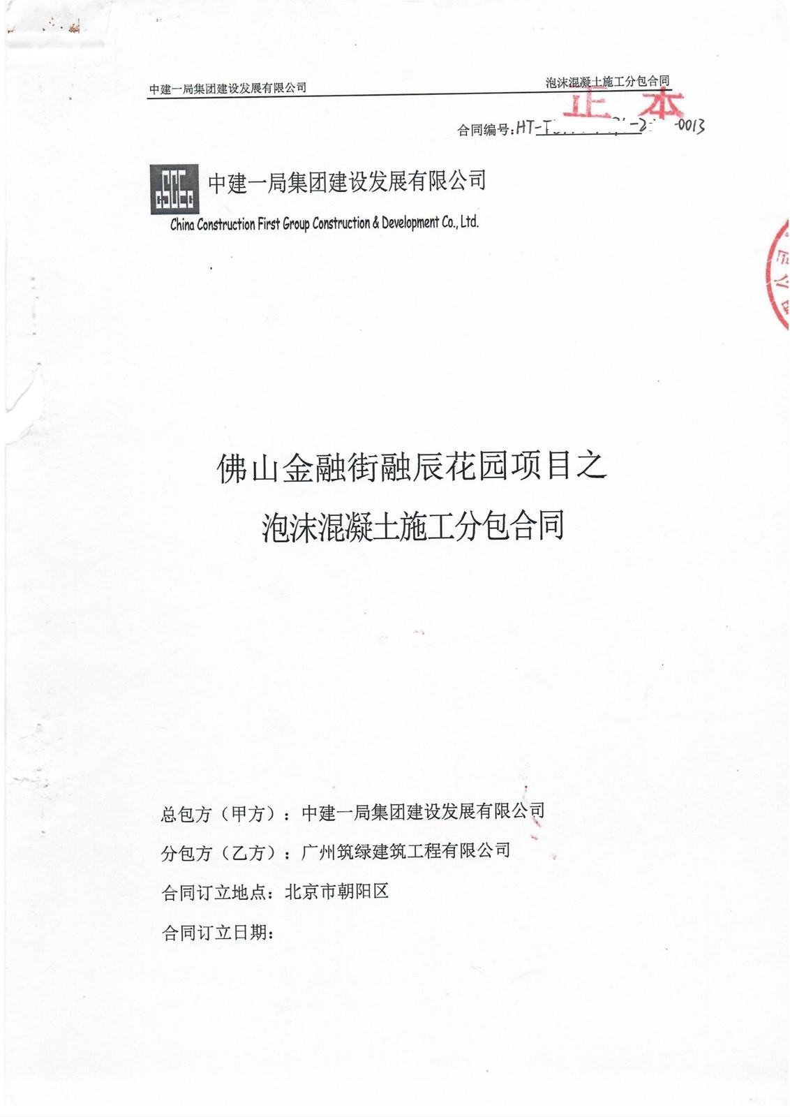 中标范围: | 山金融街融辰花园项目之泡沫混凝土施工分包合同 总包方(甲方):中建一局集团建设 ...... [登录可见] |