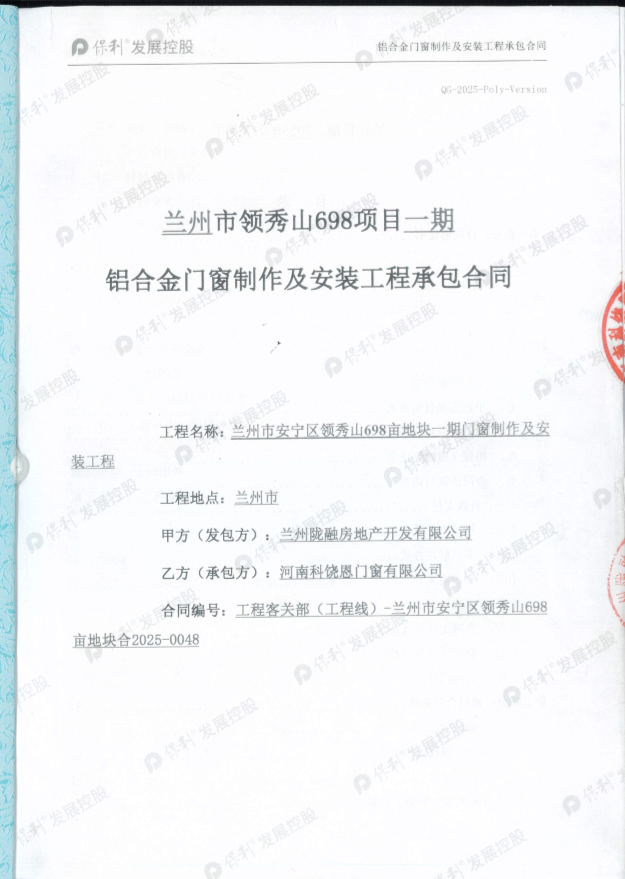 | 项目名称: | 保利兰州领秀山698项目一期铝合金门窗 |