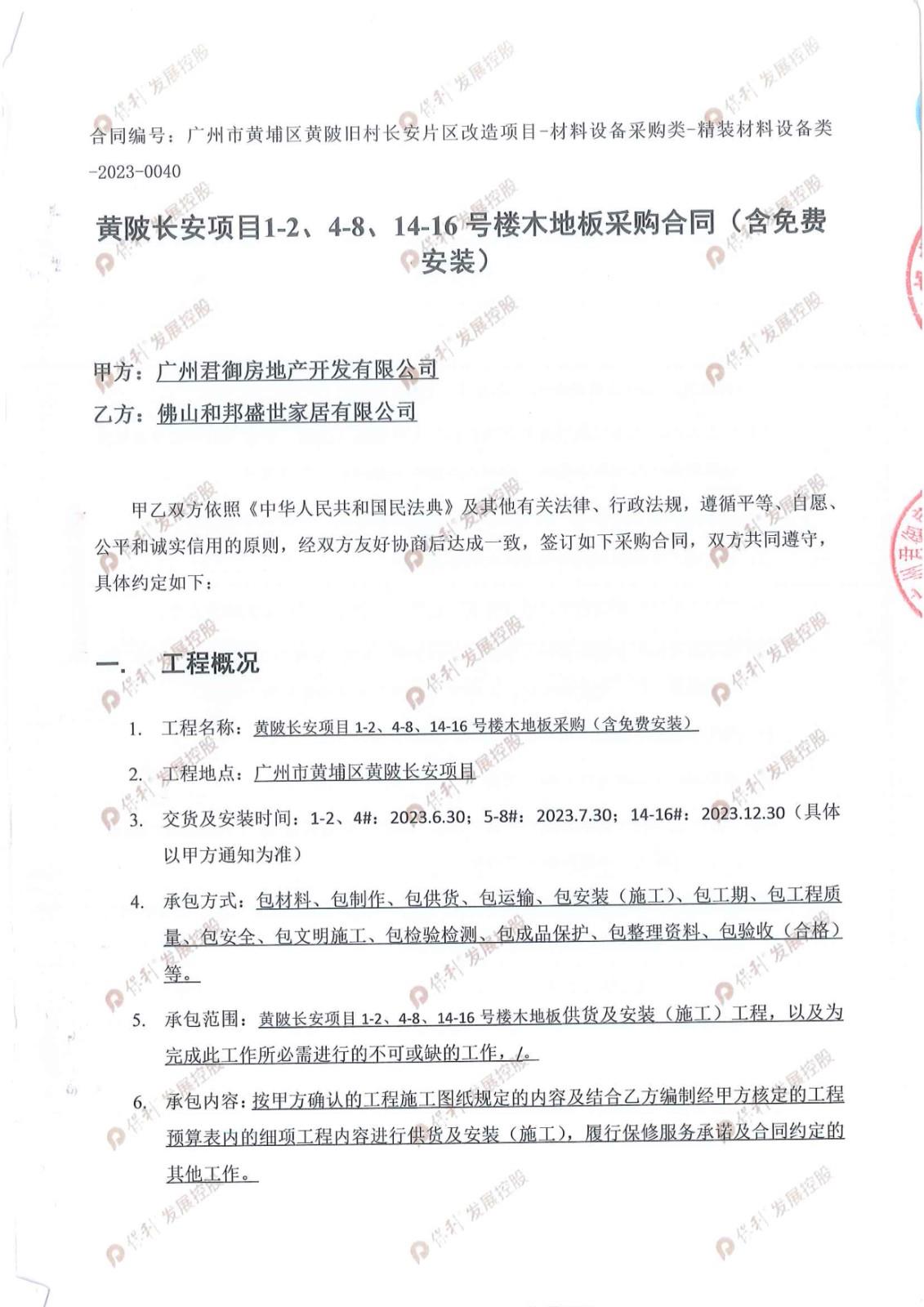 甲方名称: 广***房地产开发有限公司 项目名称: 黄陂长安项目1-24-814-16号楼木地板采购合同(含免费安装 招标名称: 黄***项目1-24-814-16号楼木地板采购合同(含免费安装 项目地点: 广州 中标时间: 2023年04月01日 中标范围: 木地板供 ...... [登录可见]