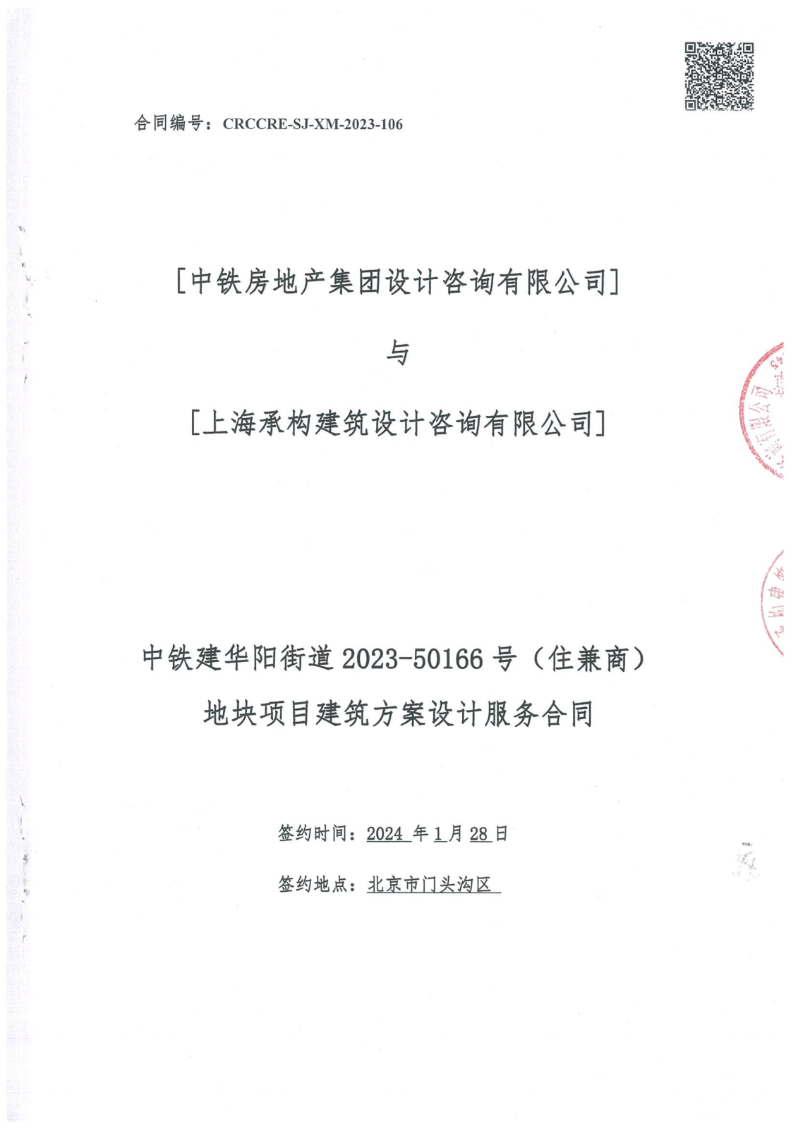 | 招标名称: | 中***阳街道2023-50166号(住兼商)地块项目建筑方案设计服务合同 |