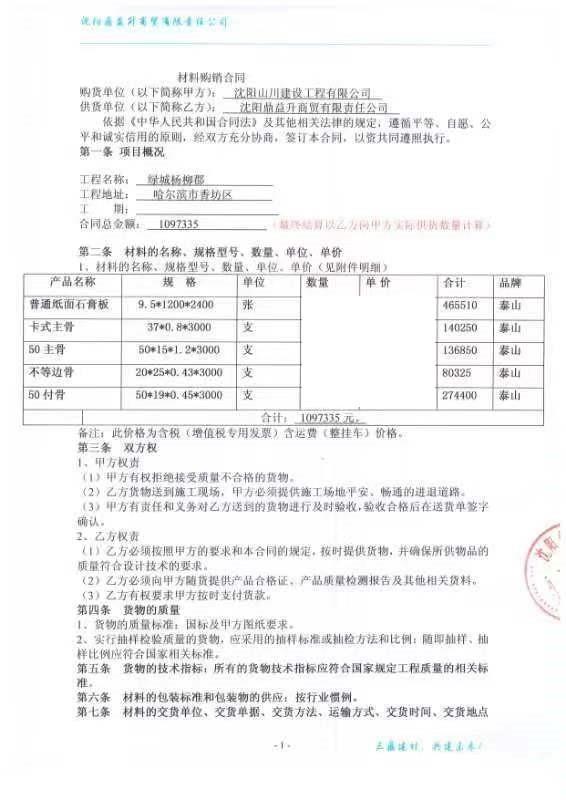 | 甲方名称: | 沈***建设工程有限公司 |
