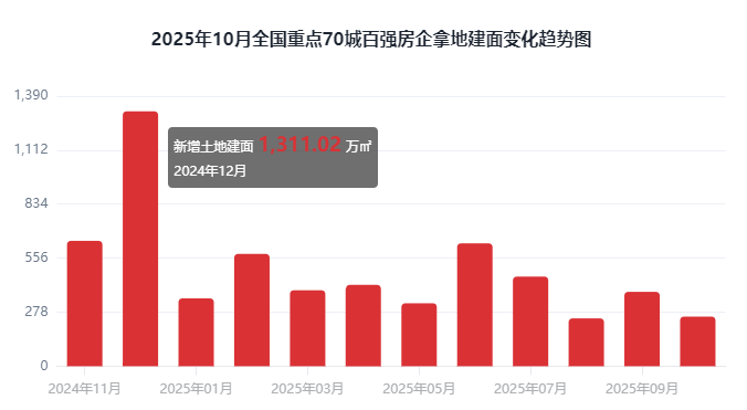 综上,2025年10月重点70城新增土地建面前10房企合计拿地234.23万㎡,同比-25.45%。