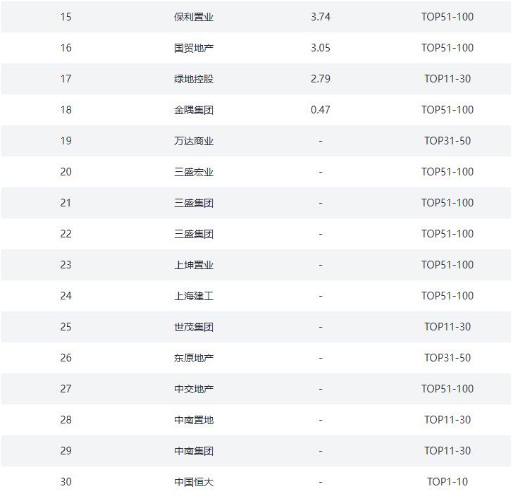 2.新增土地建面:百强房企新增土地建面排行数据仅含招拍挂方式