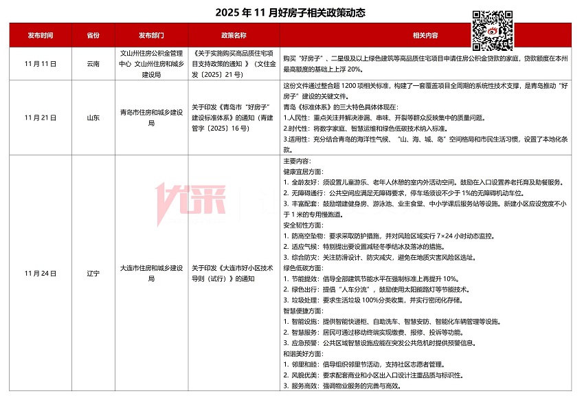 《2025年11月好房子政策汇总》