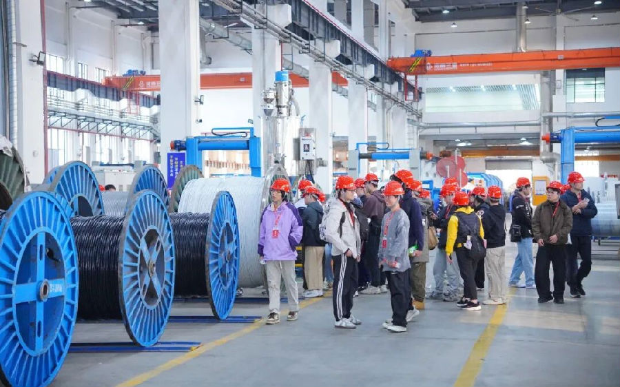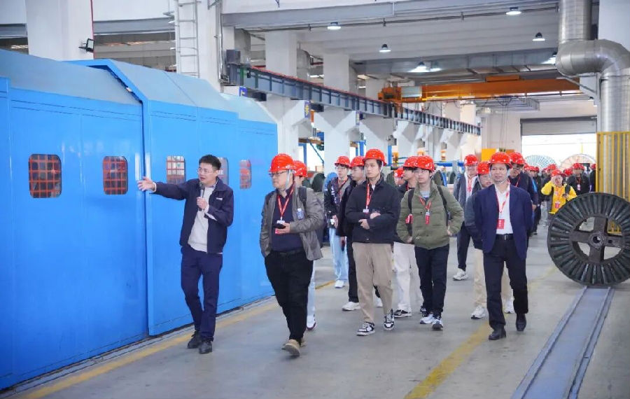 交流环节结束后,在张总等的陪同下,师生们先后参观了民兴科技展厅、技术研发中心、智能制造车间等,实地了解电线电缆生产工艺流程、检验检测环节、质量管控体系等,让大家对电线电缆产品、电缆技术在实际中的应用有了更直观深入的认识。
