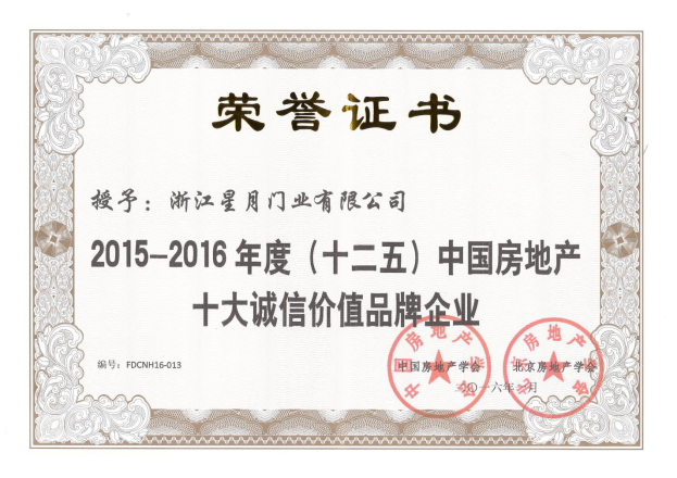 2015-2016中国房地产十大诚信价值品牌企业