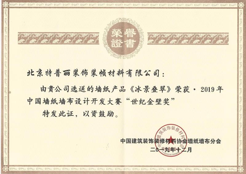 颁发机构:中国建筑装饰装修材料协会墙纸墙布分会