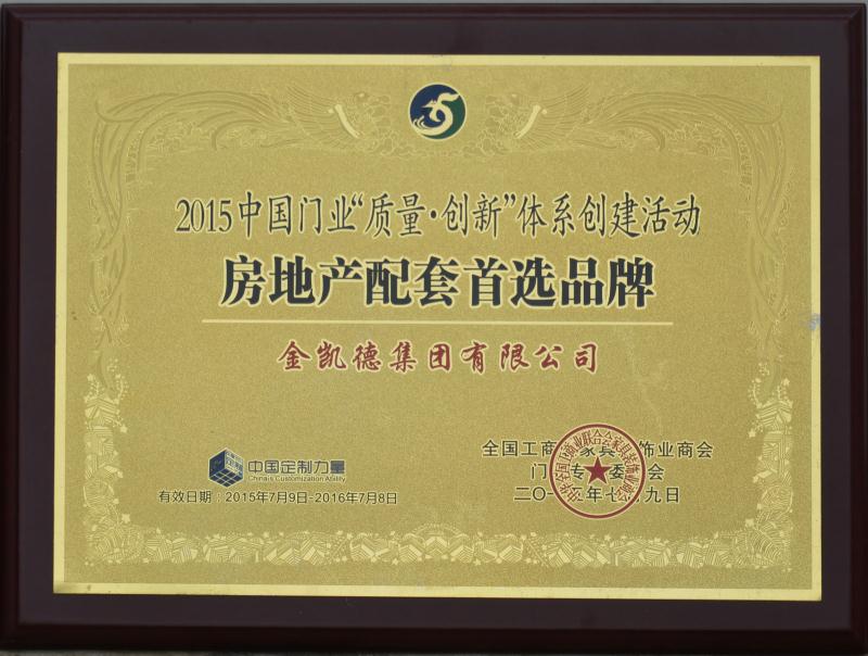 2015中国门业“质量.创新”体系创建活动房地产配套首选品牌