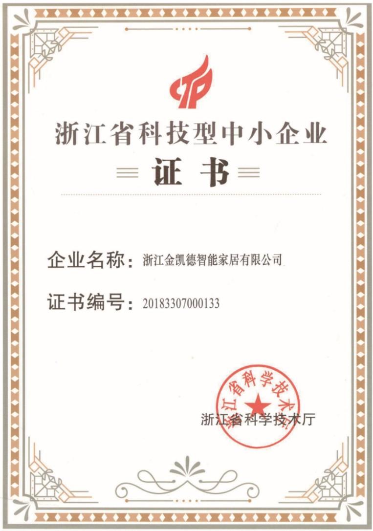 奖项名称: 浙江省科技型中小企业证书