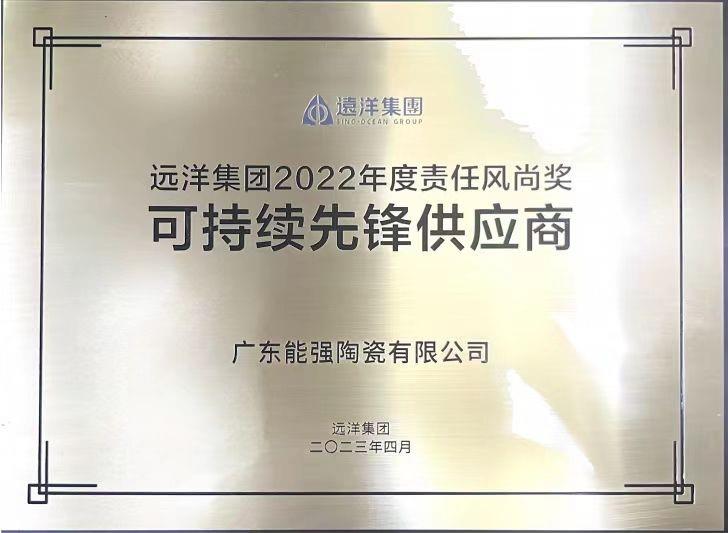 广东能强陶瓷有限公司荣获远洋集团2022年度责任风尚奖-可持续先锋供应商