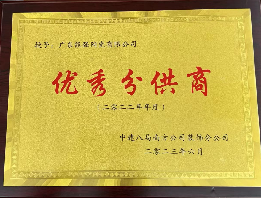 中建八局南方公司装饰分公司授予广东能强陶瓷有限公司优秀分销商称号