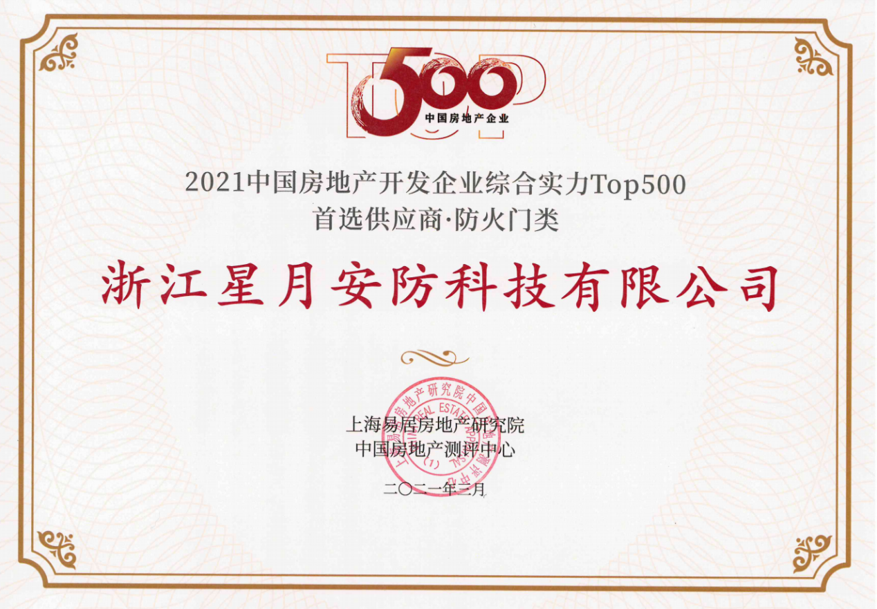 2021中国房地产开发企业综合实力Top500首选供应商·防火门类-浙江星月安防科技有限公司