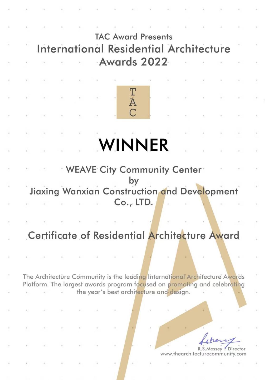 嘉兴万科渔里未来社区邻里中心获得年度优胜奖的最高奖项