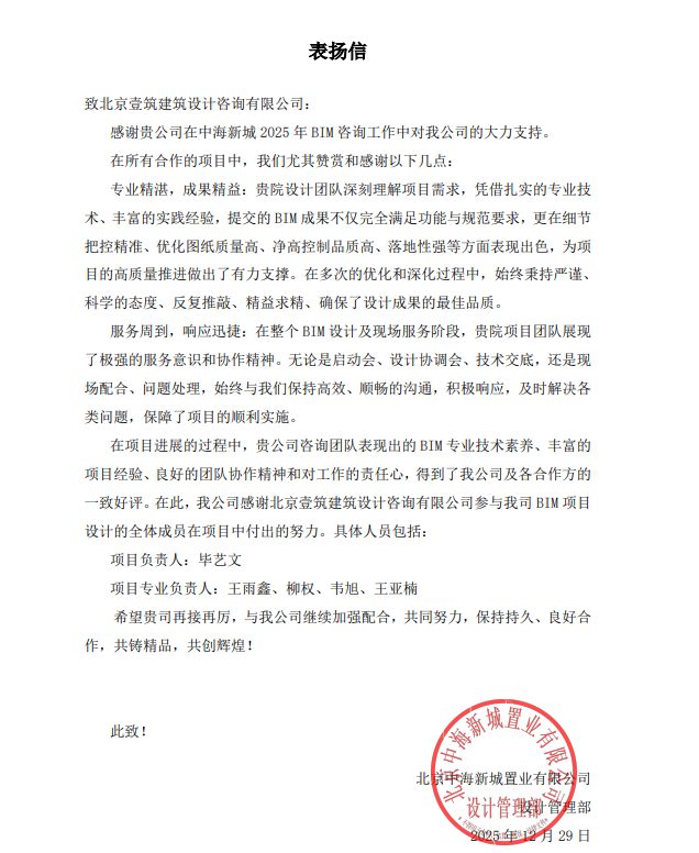 专业精湛,成果精益:贵司设计团队深刻理解项目需求,凭借扎实的专业技术、丰富的实践经验,提交的BIM成果不仅完全满足功能与规范要求,更在细节把控精准、优化图纸质量高、净高控制品质高、落地性强等方面表现出色,为项目的高质量推进做出了有力支撑。在多次的优化和深化过程中,始终秉持严谨、科学的态度、反复推敲、精益求精、确保了设计成果的最佳品质。