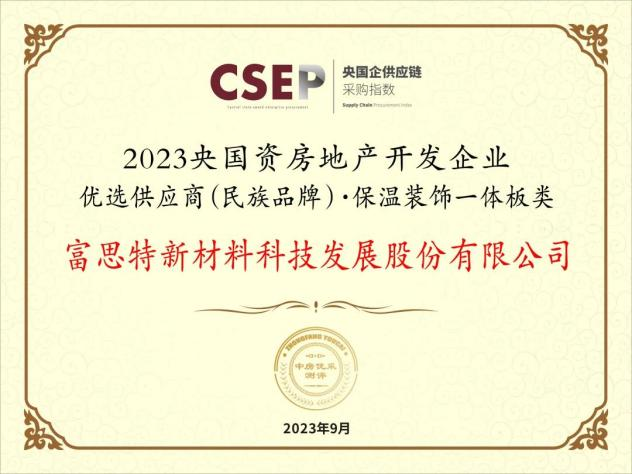 奖项名称: 优选供应商(民族品牌)·保温装饰一体板类